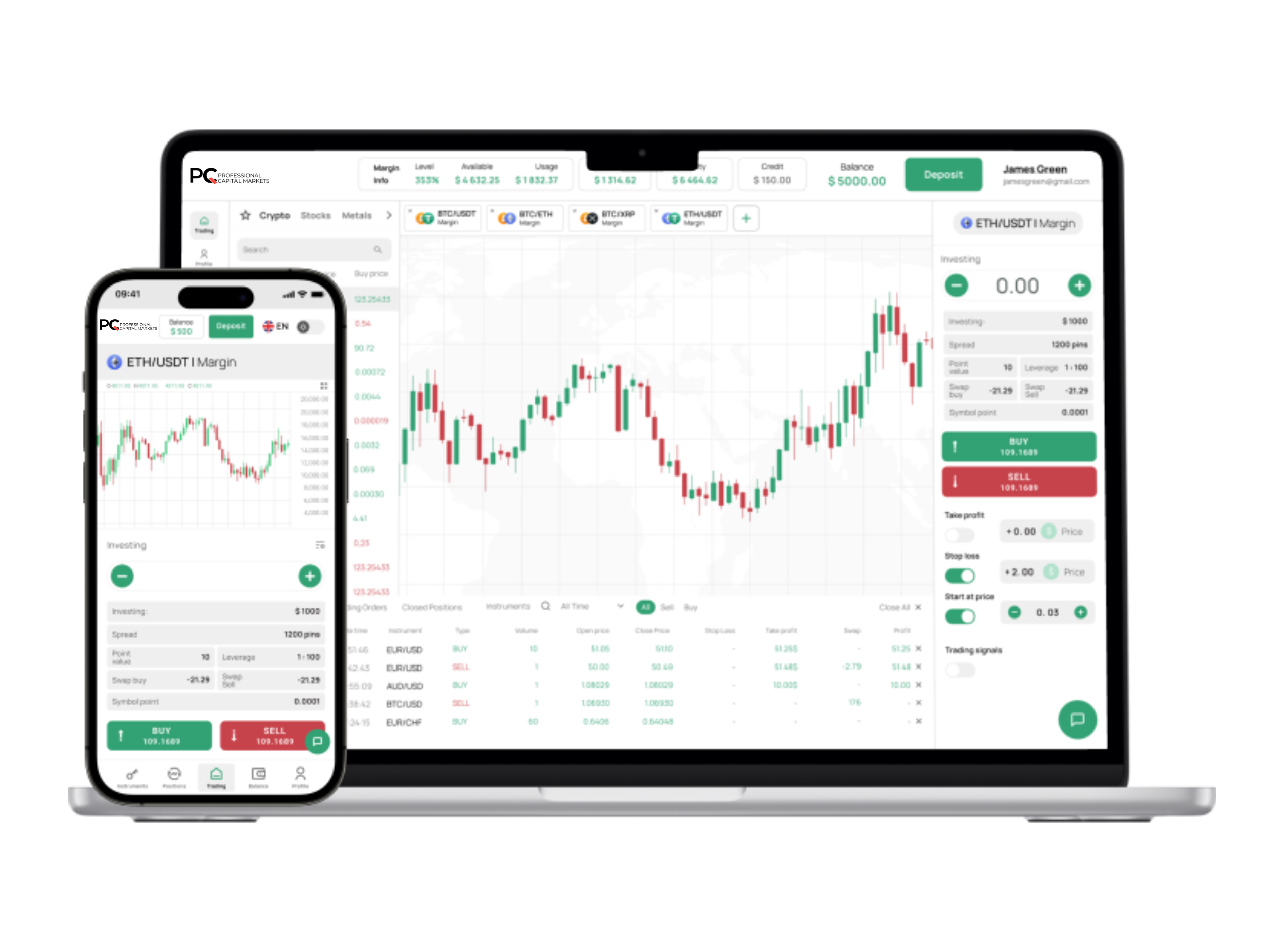 Платформа PROFESSIONAL CAPITAL MARKETS LTD , веб-трейдер, а также приложения для мобильных устройств и планшетов дают вам возможность торговать в любой точке мира и в любое время.